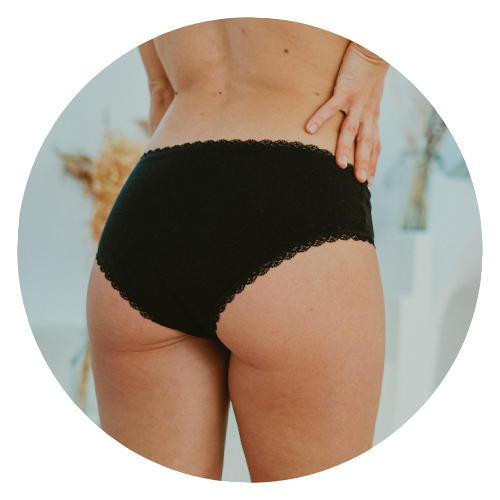 Vous pouvez également porter notre lingerie en complément de protections hygiéniques classiques si vous avez peur des fuites.