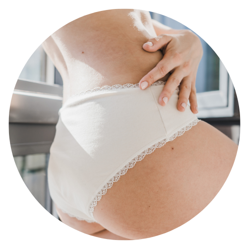 Vous pouvez également porter notre lingerie en complément de protections hygiéniques classiques si vous avez peur des fuites.